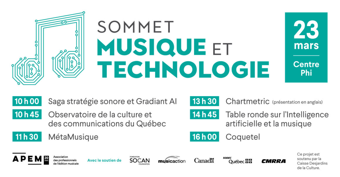 L’Association des professionnels de l’édition musicale (APEM) a tenu la septième édition du Sommet musique et technologie le 23 mars 2023 au Centre Phi.