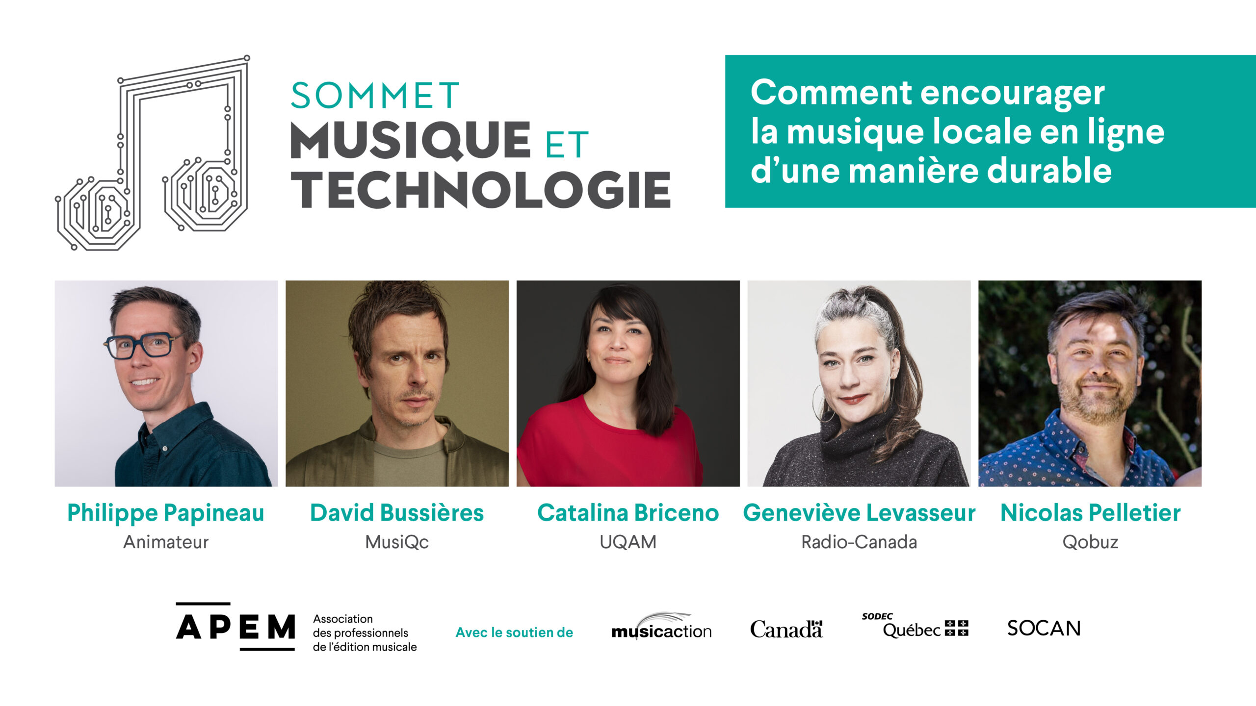 Lors d’un échange animé par Philippe Papineau, David Bussières (musiqc.ca), Catalina Briceno (UQAM), Geneviève Levasseur (Radio-Canada) et Nicolas Pelletier (Qobuz) échangeront des idées et solutions pour valoriser notre musique en ligne alors qu’on sent un mouvement en faveur de la consommation locale, que la réglementation des plateformes est d’actualité et que la stratégie France-Québec pour la découvrabilité vient d’être renouvelée.